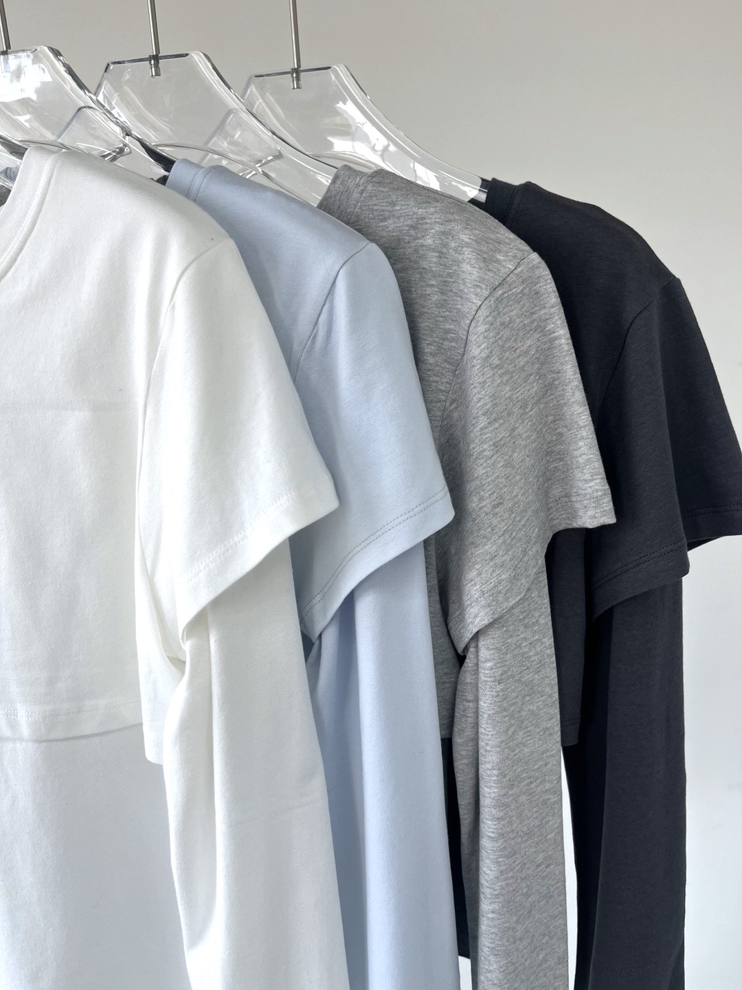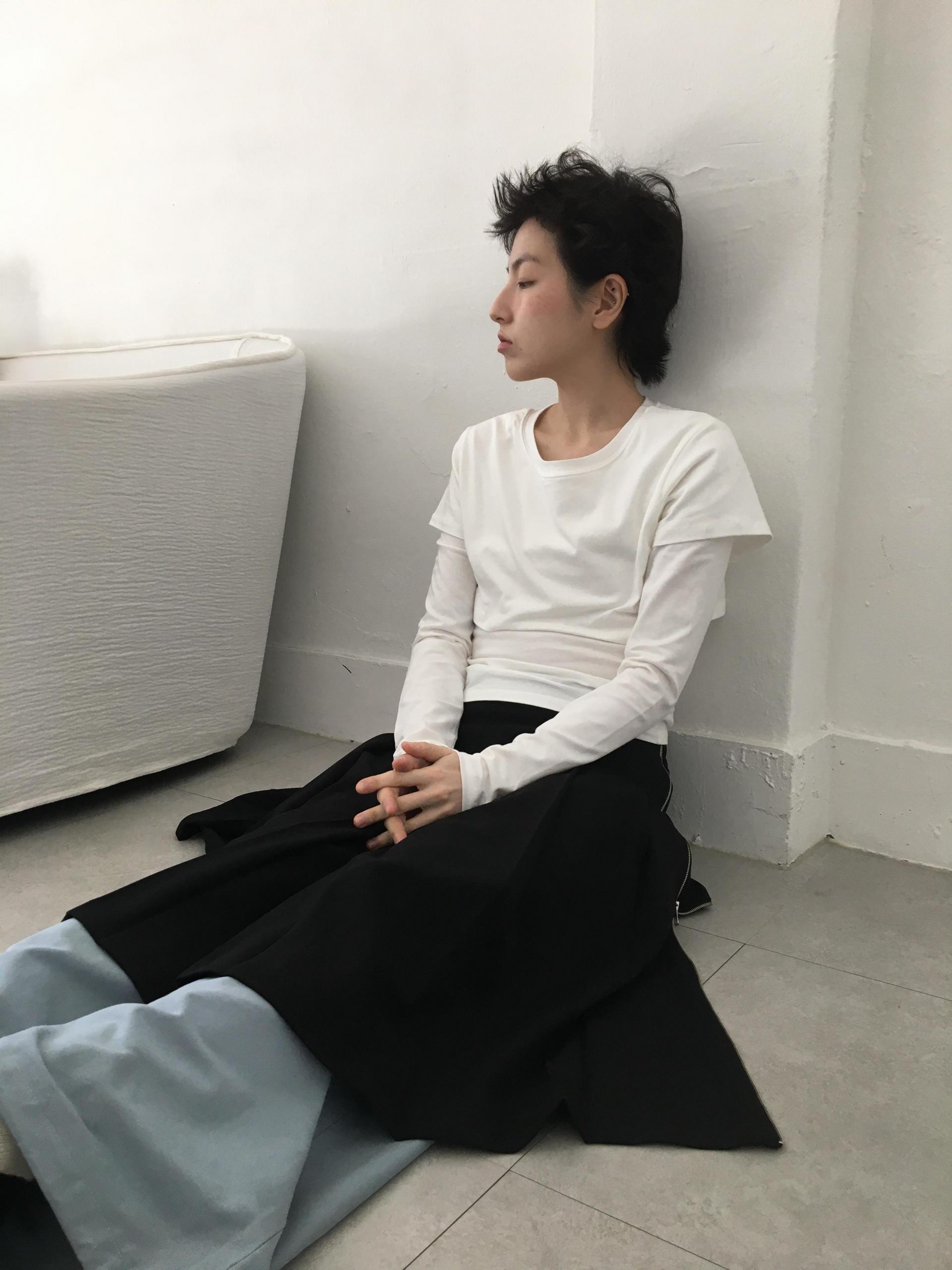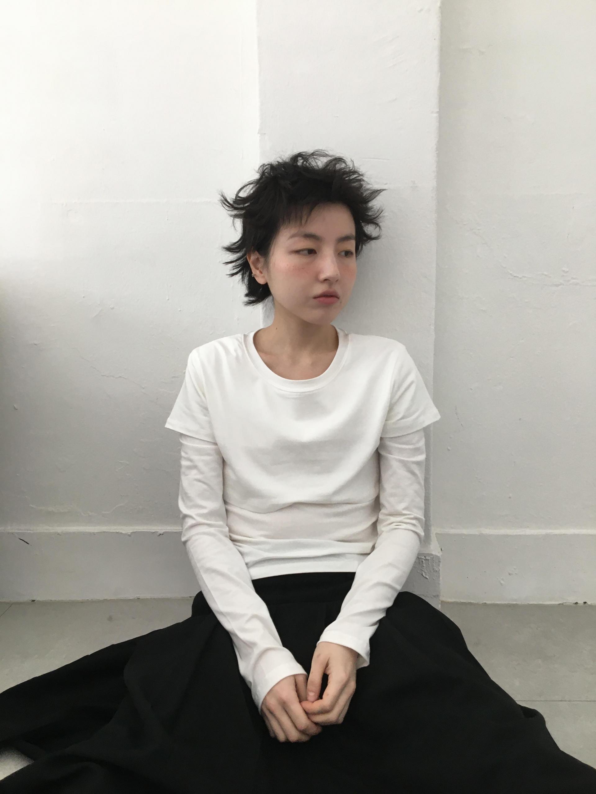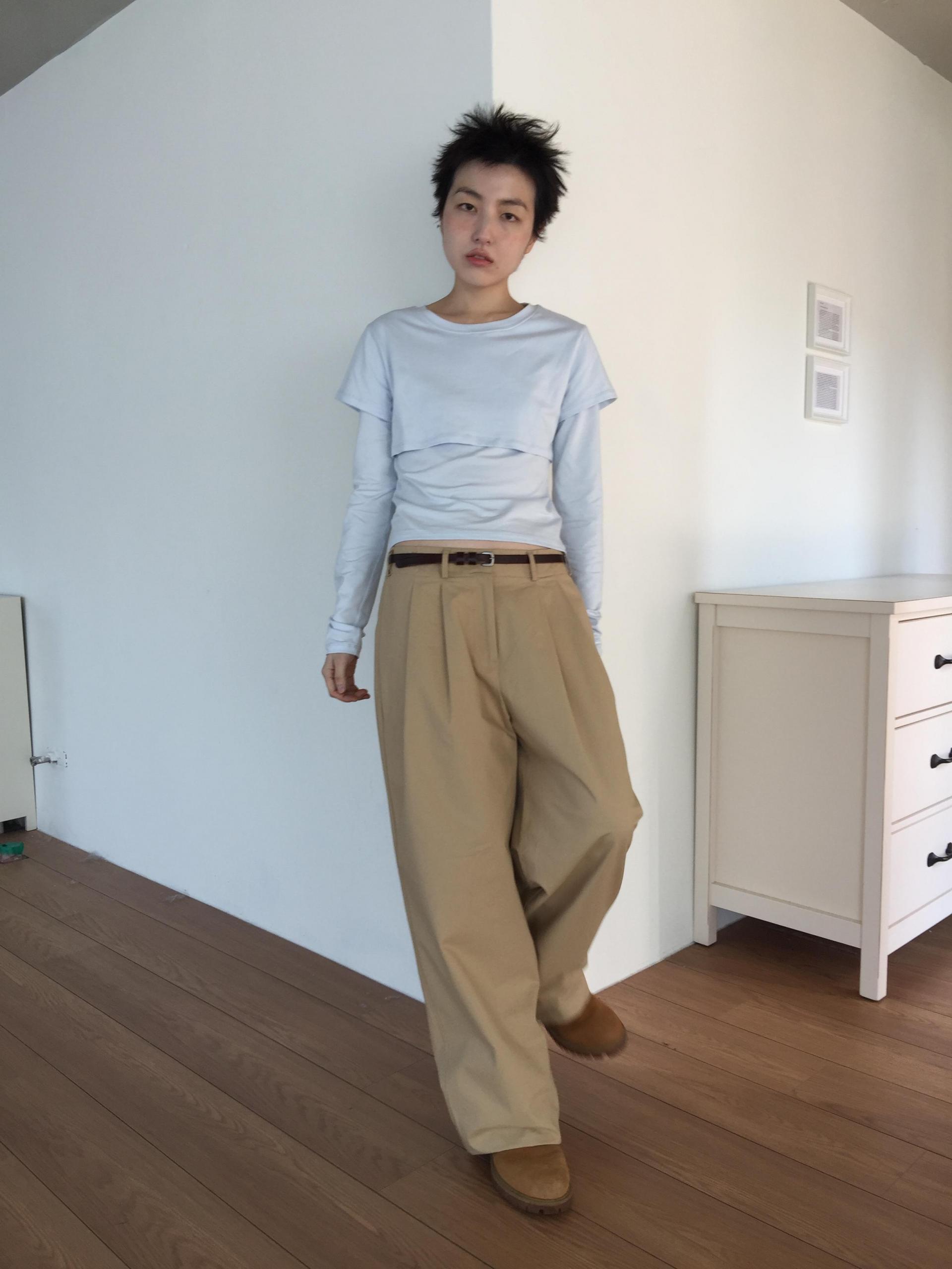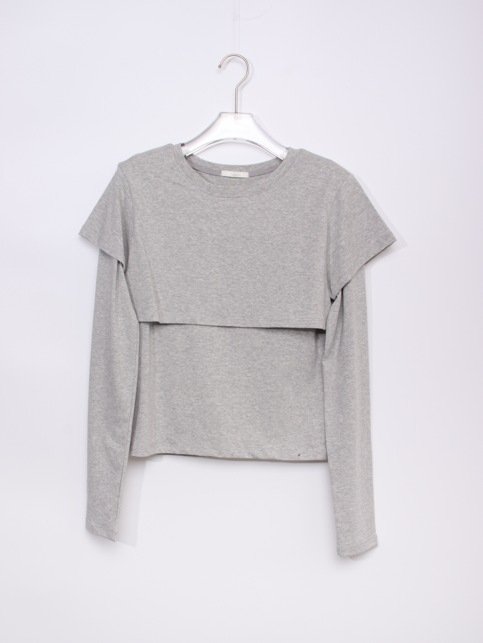 긴소매 기장과 반소매 기장이 합쳐져 레이어드한 것 처럼 연출되는 티셔츠
