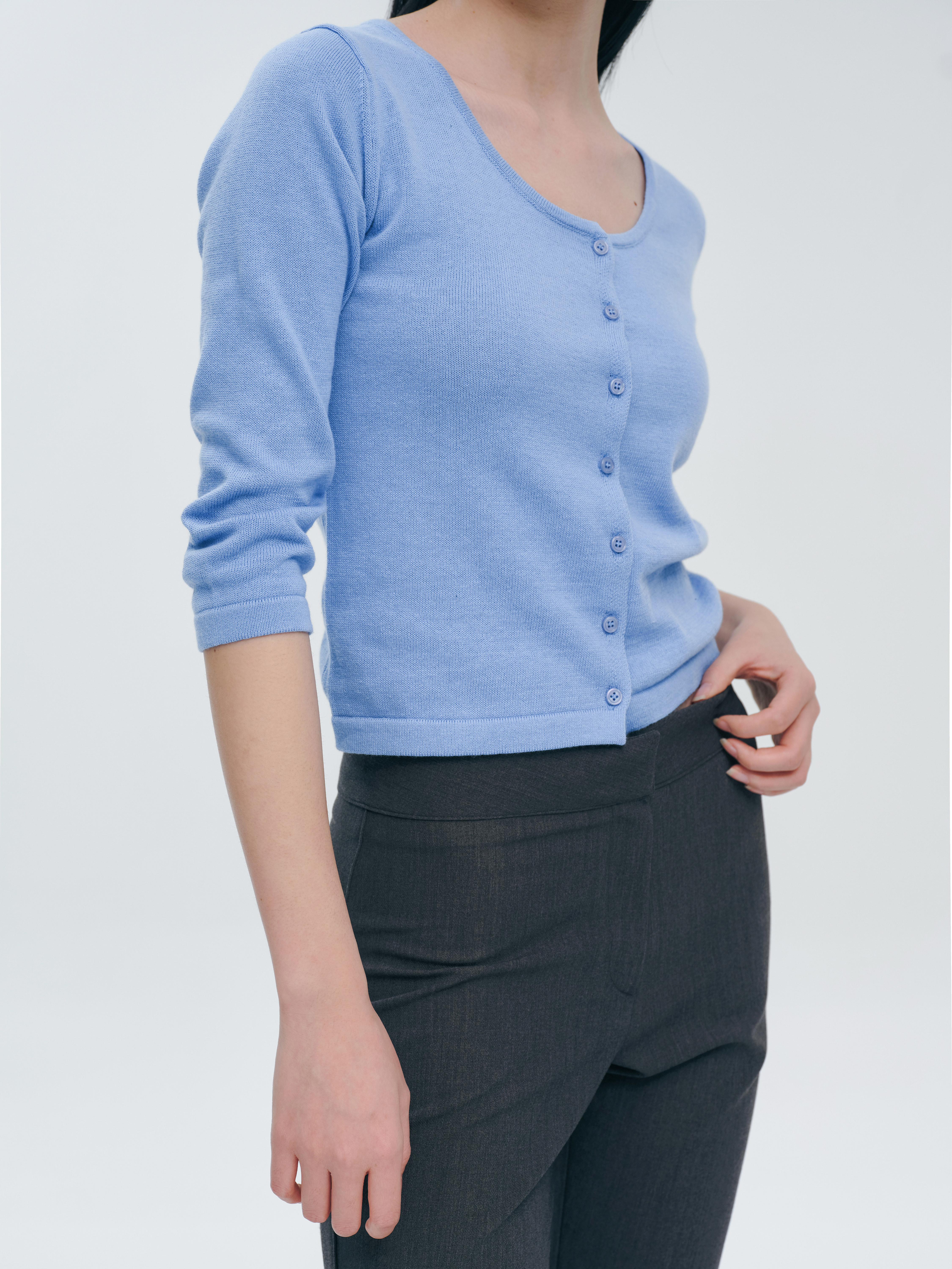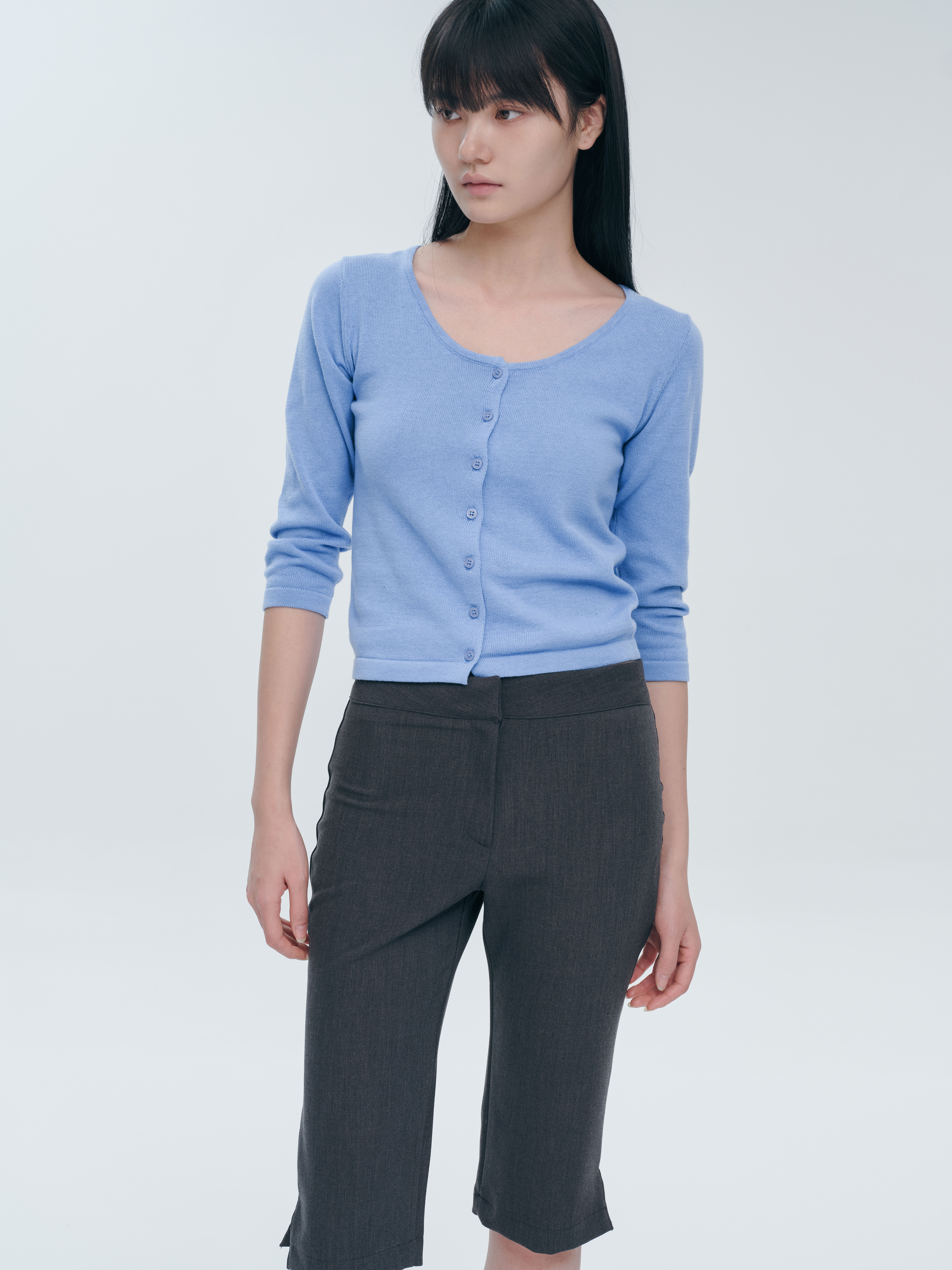 short scoop-neck knit cardigan