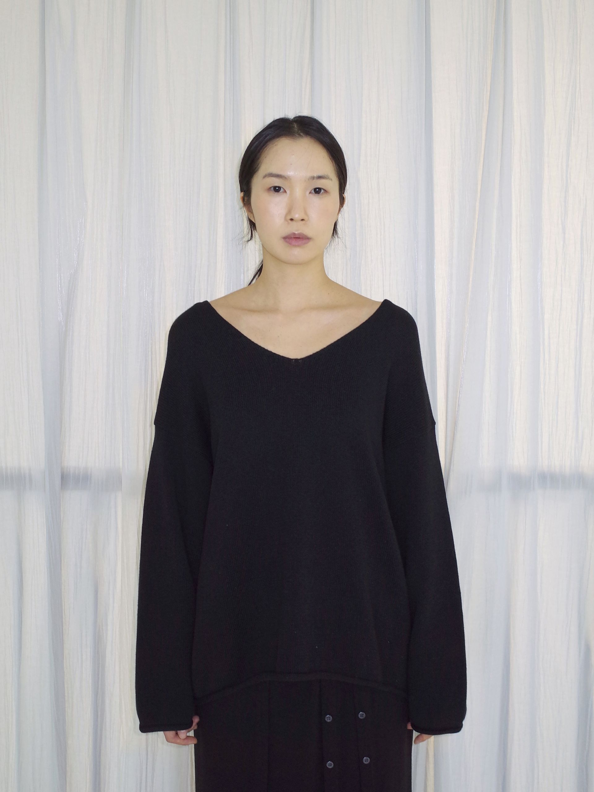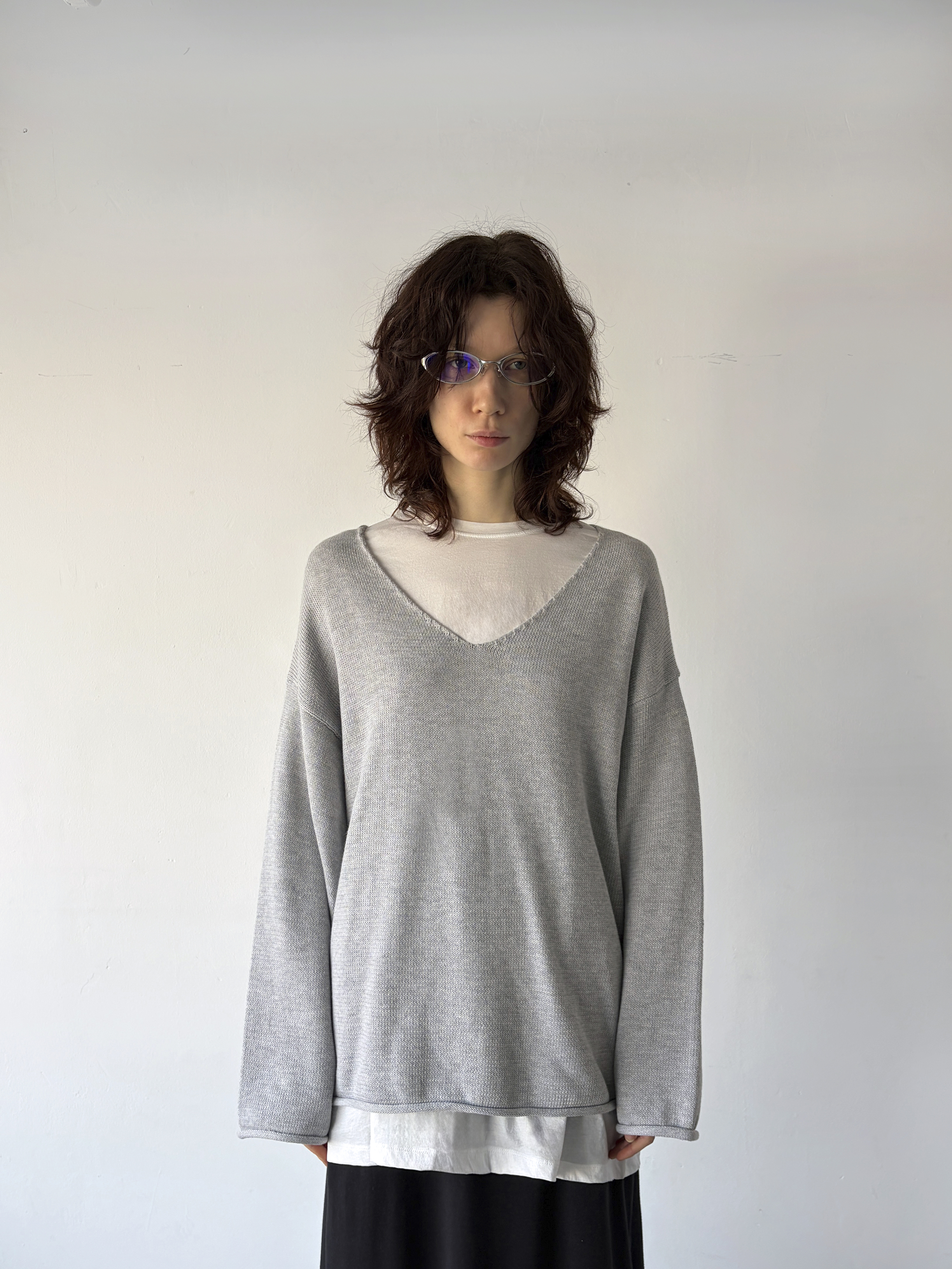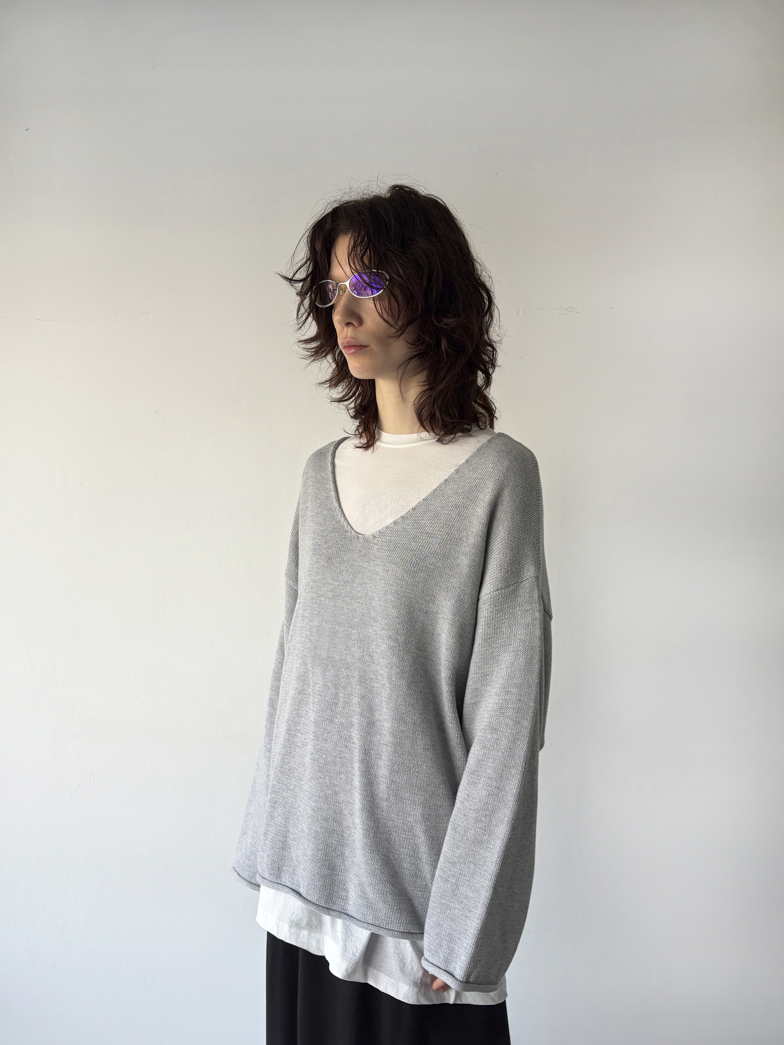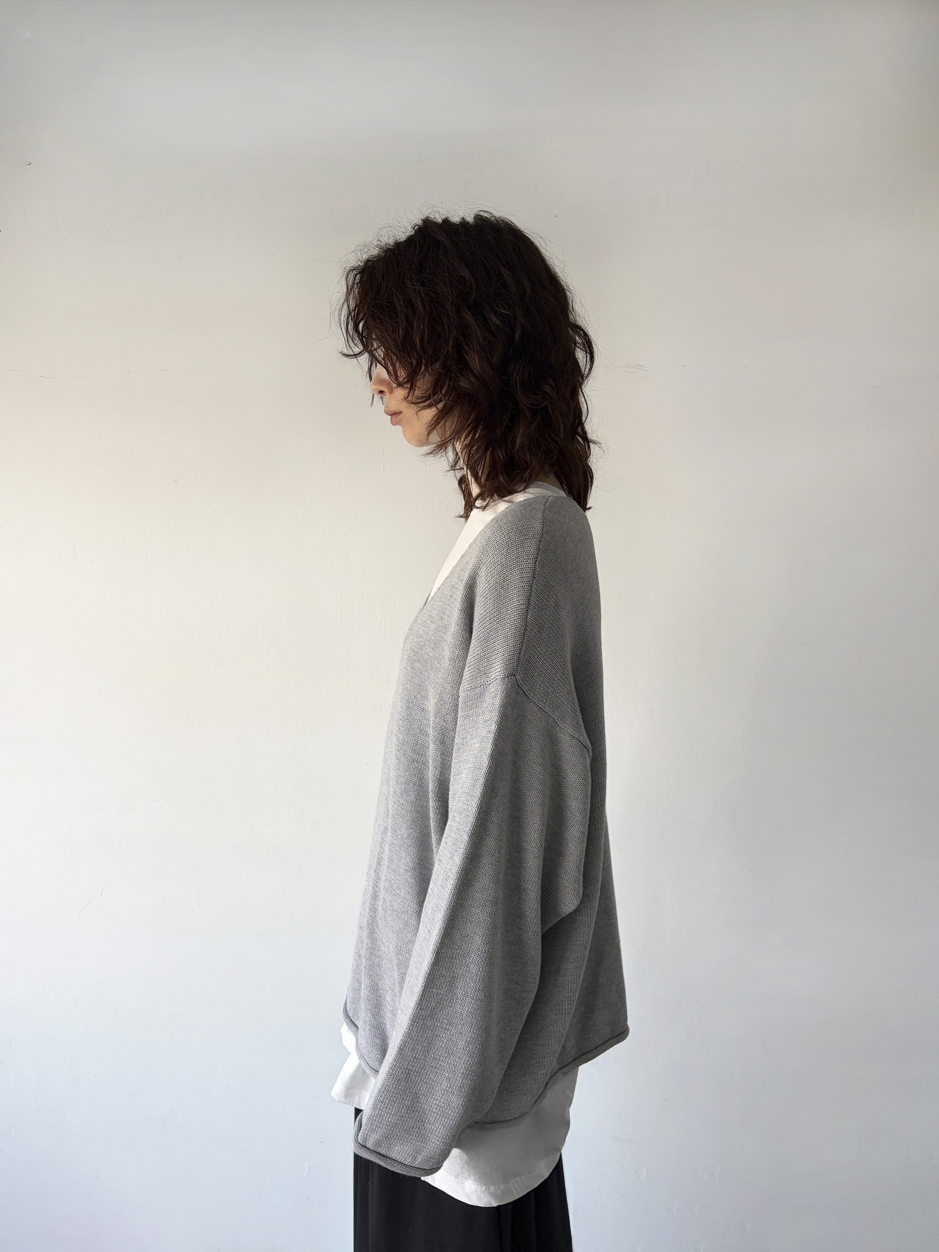 curling v-neck knit