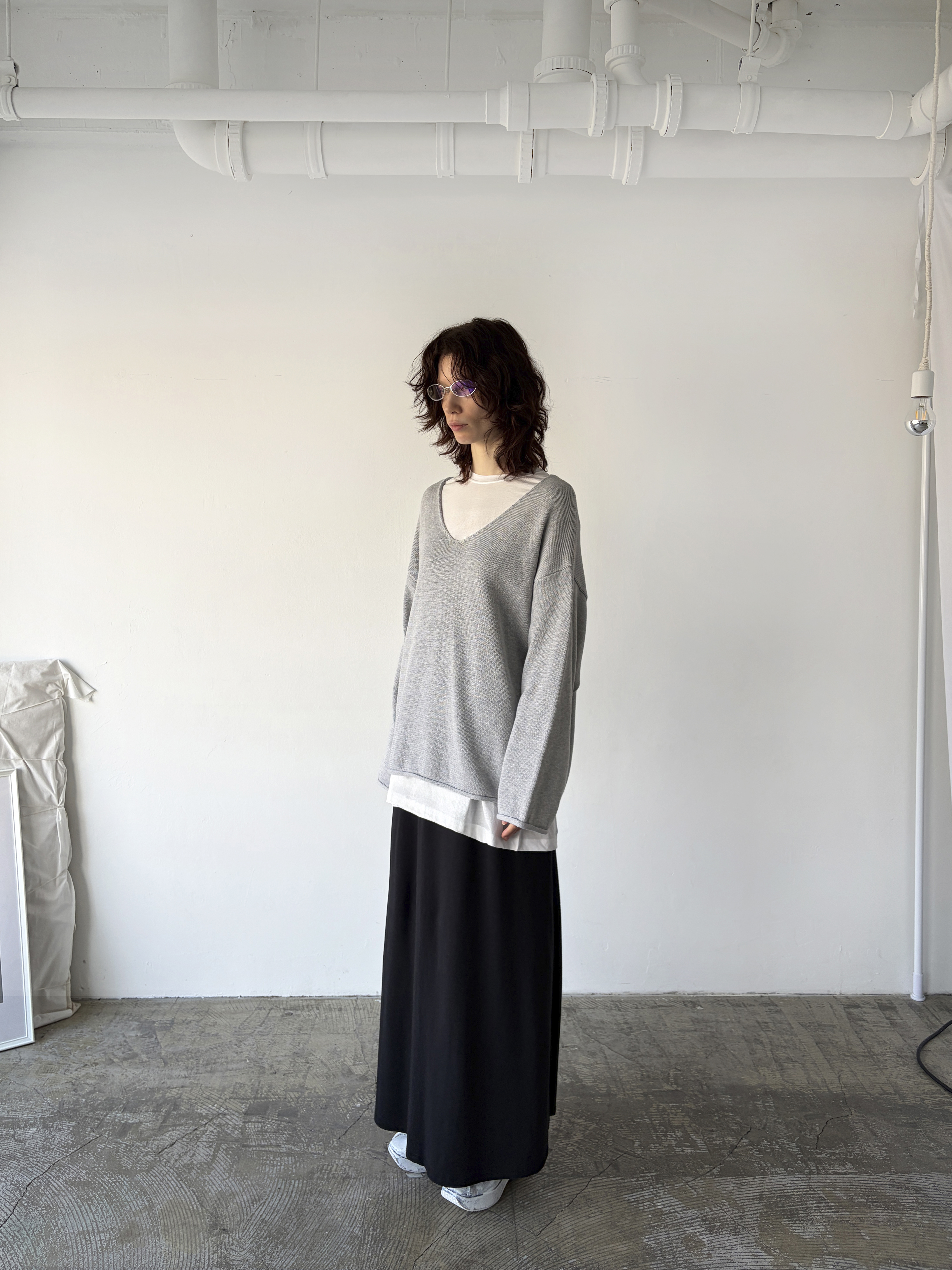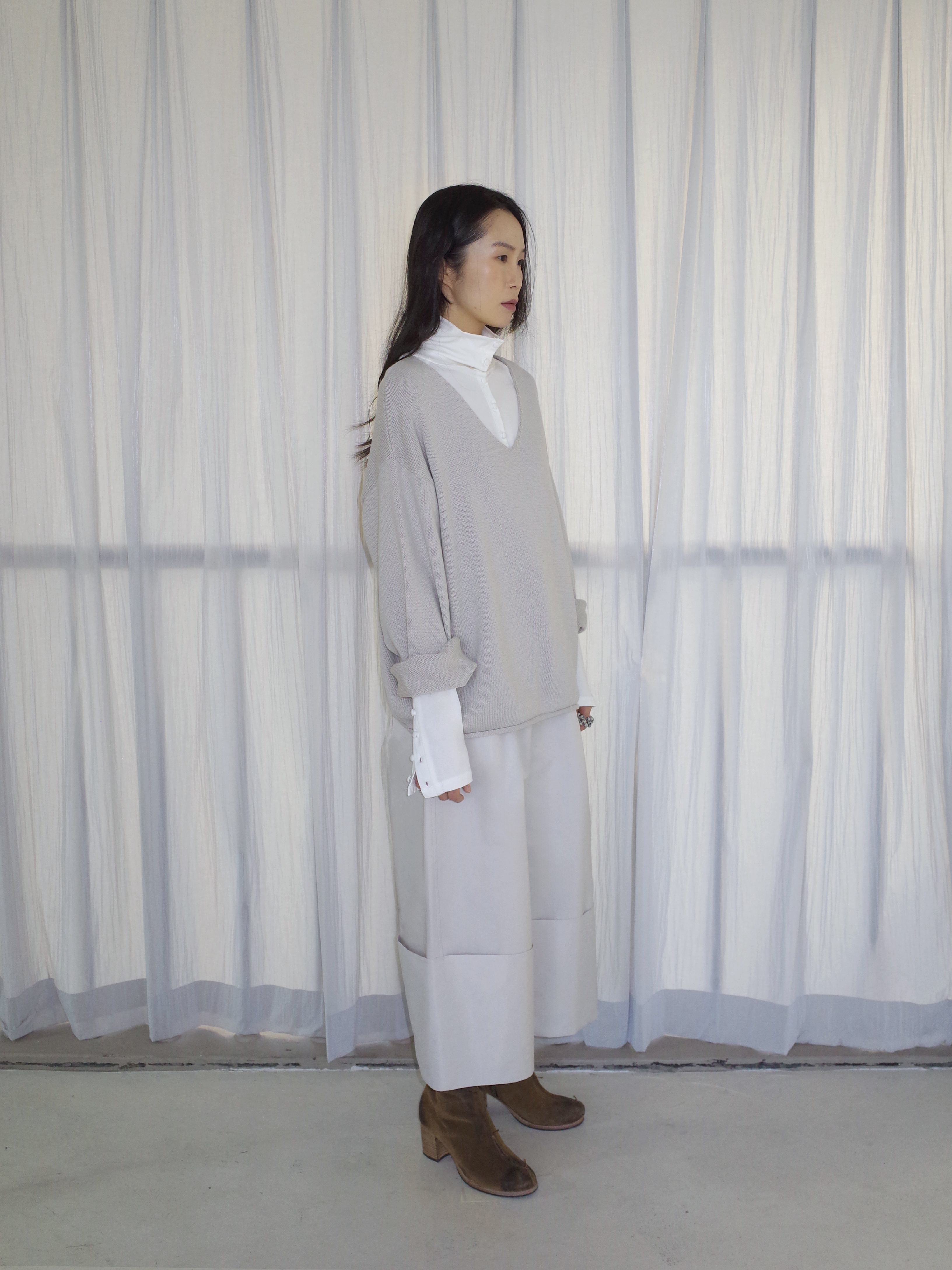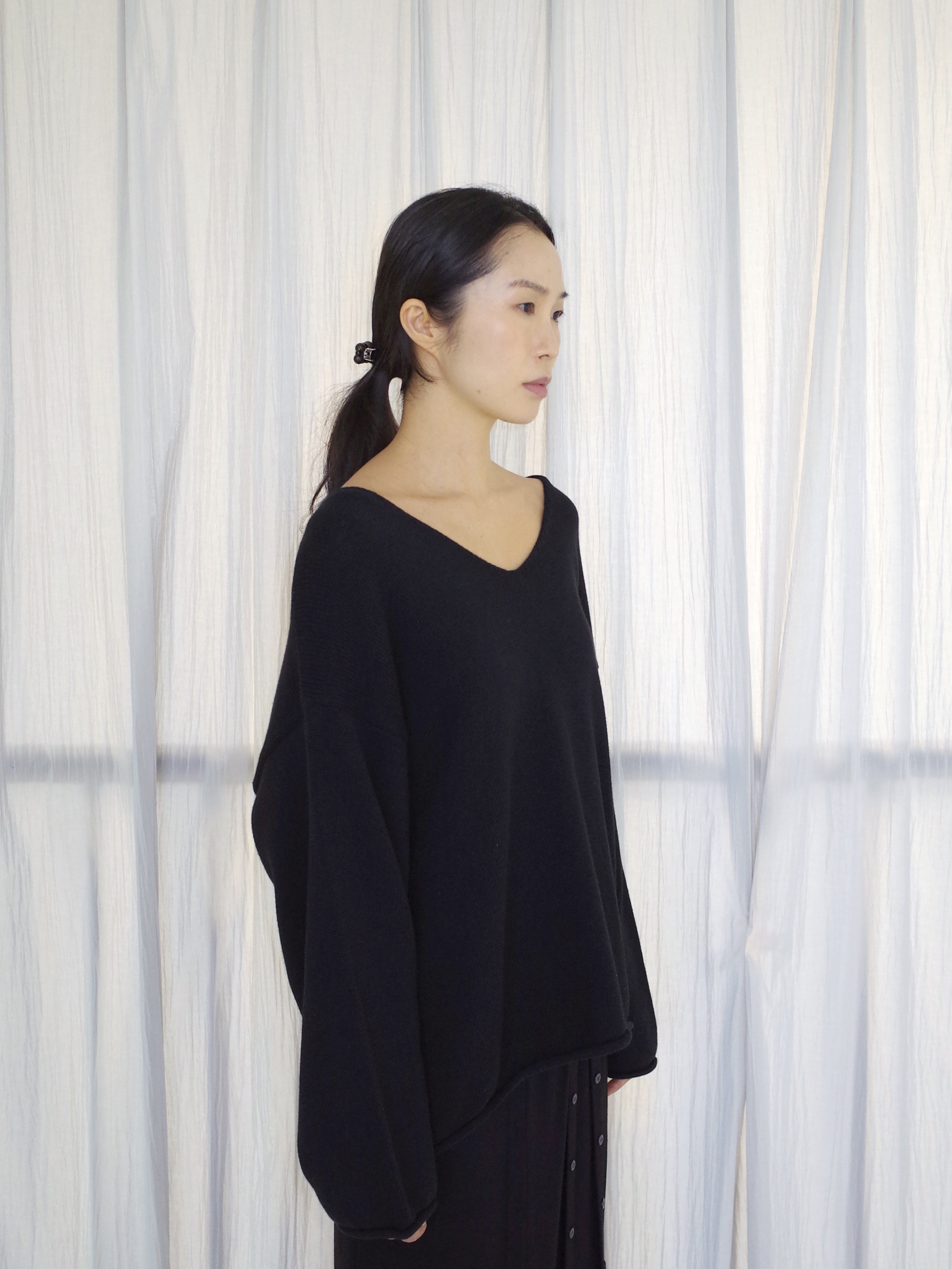 curling v-neck knit