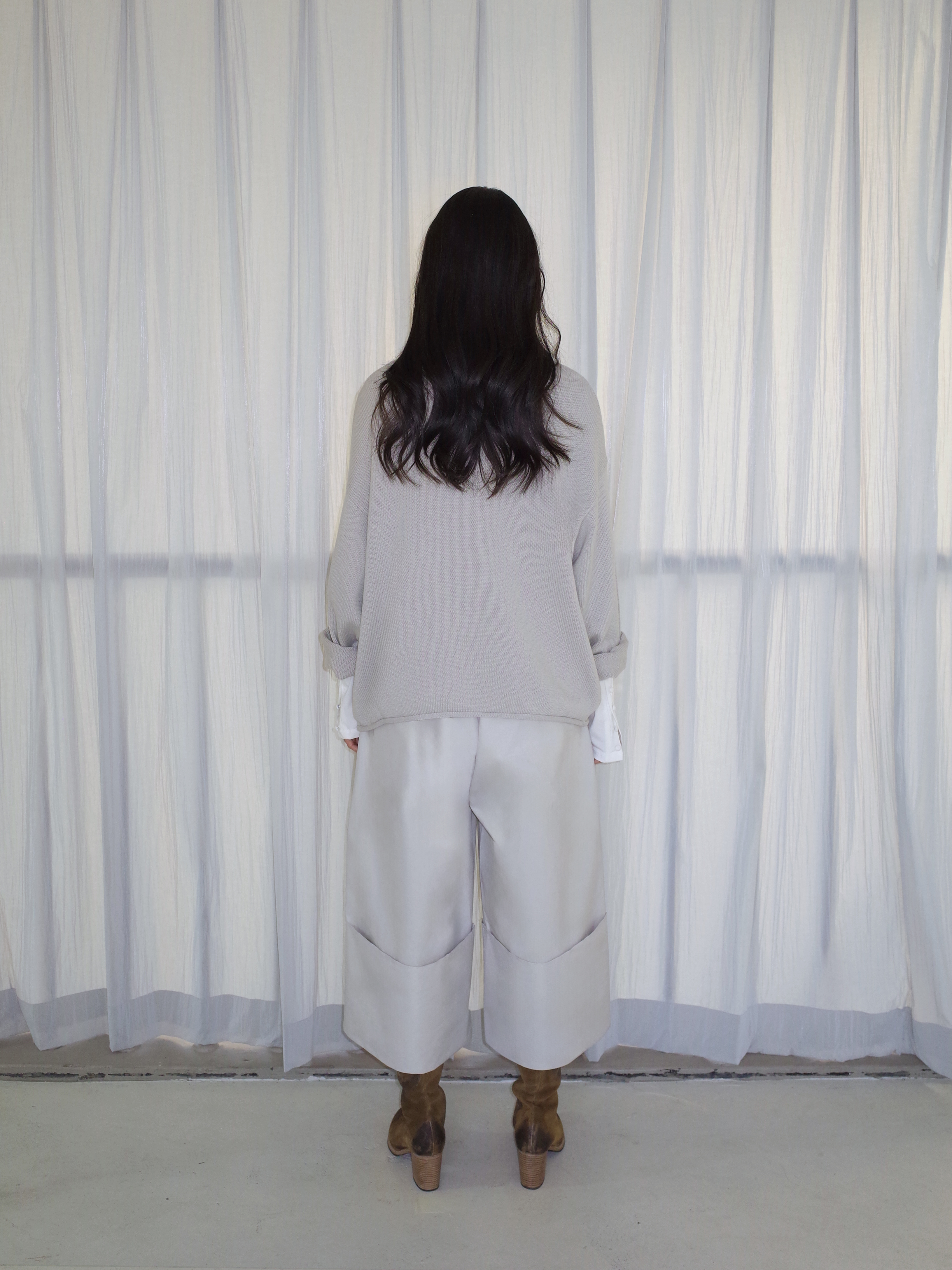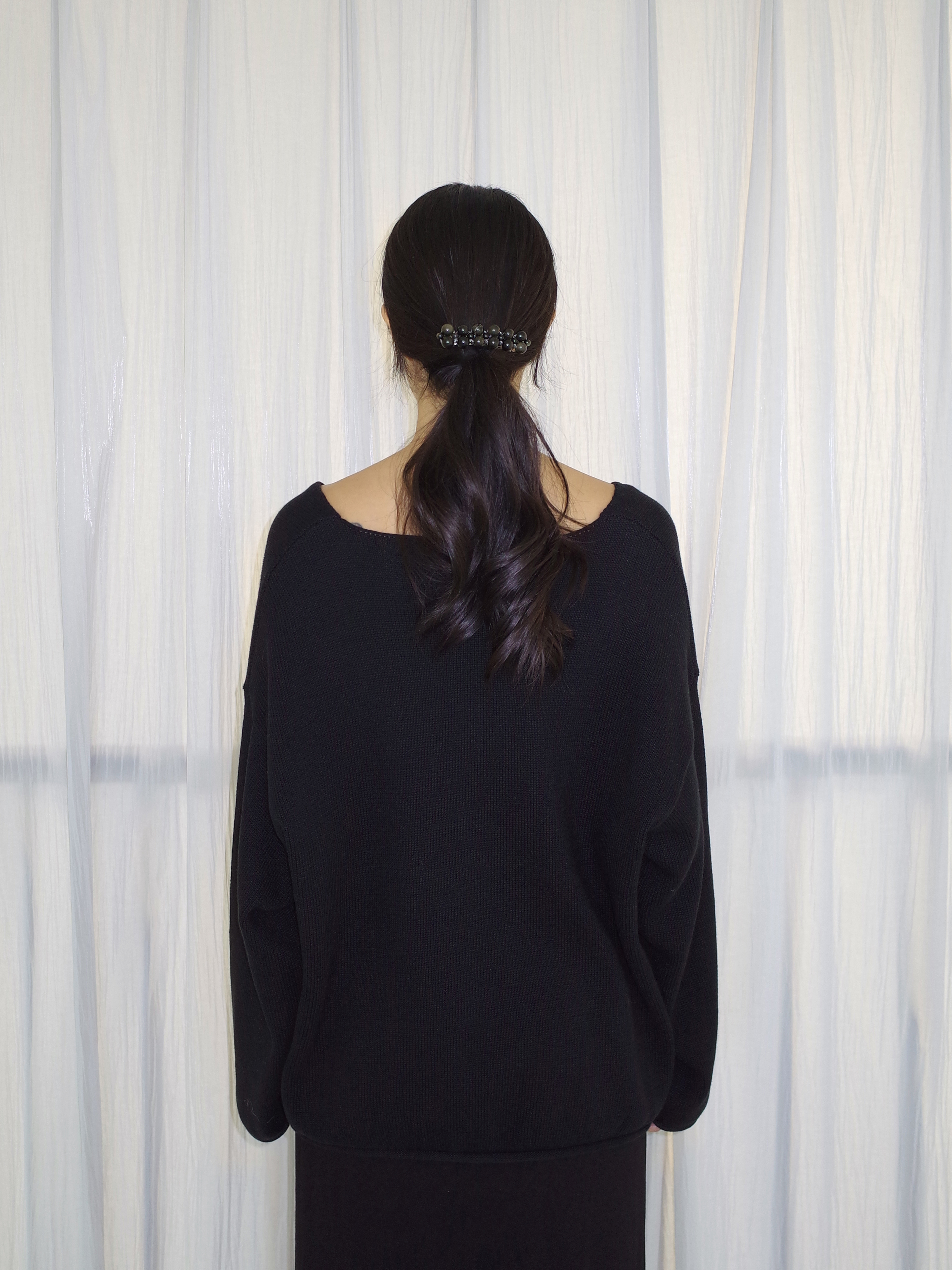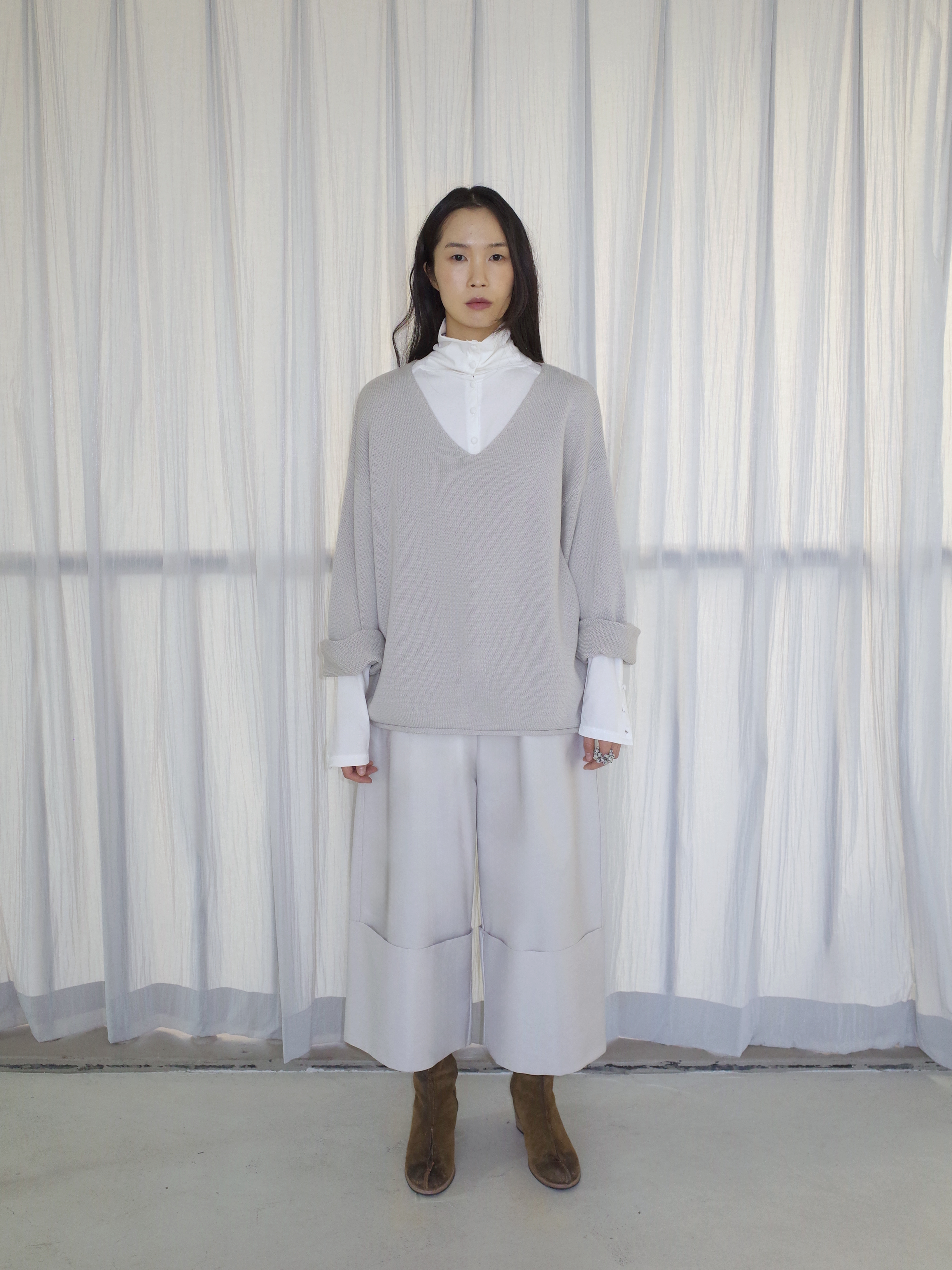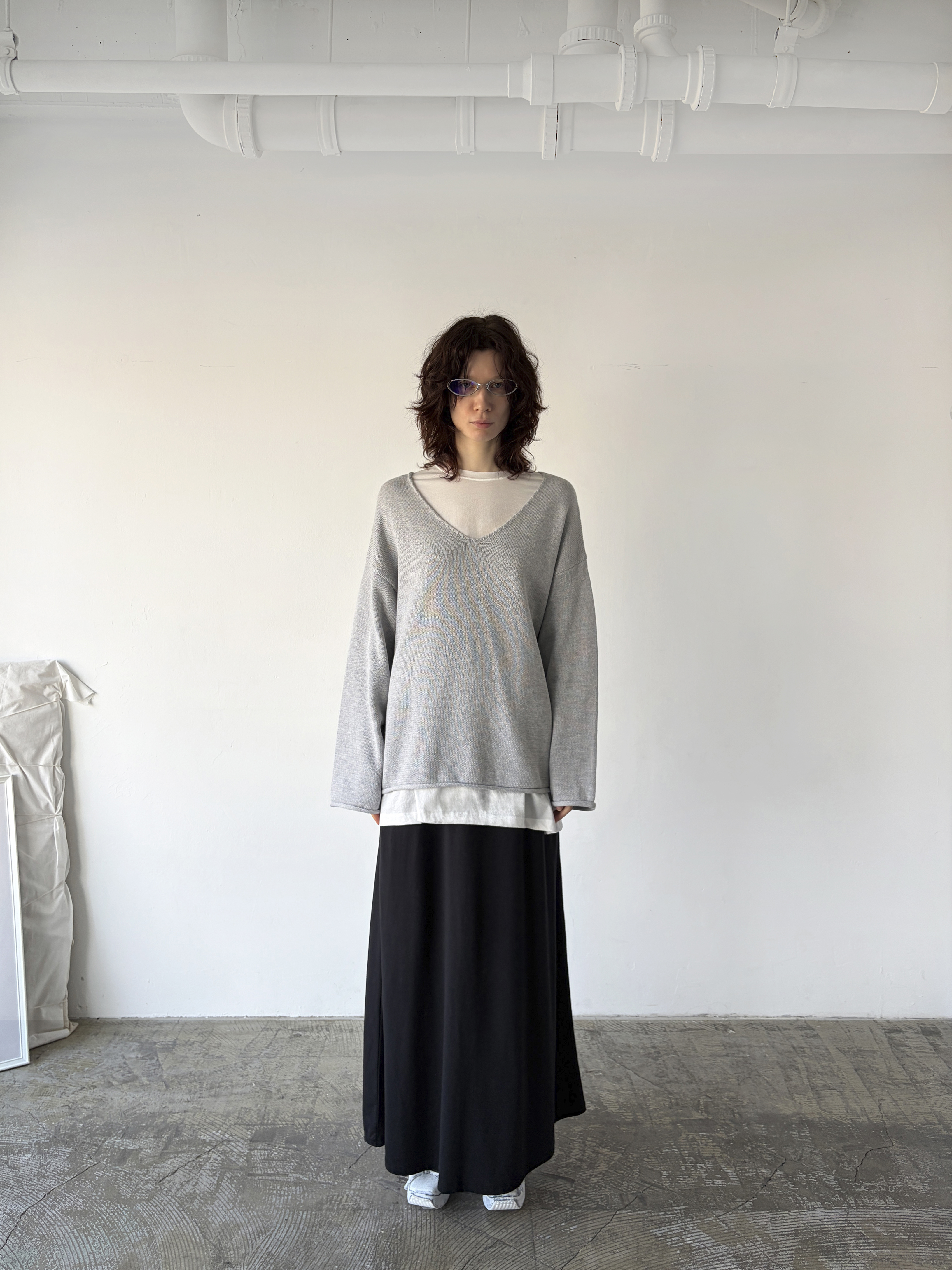 curling v-neck knit