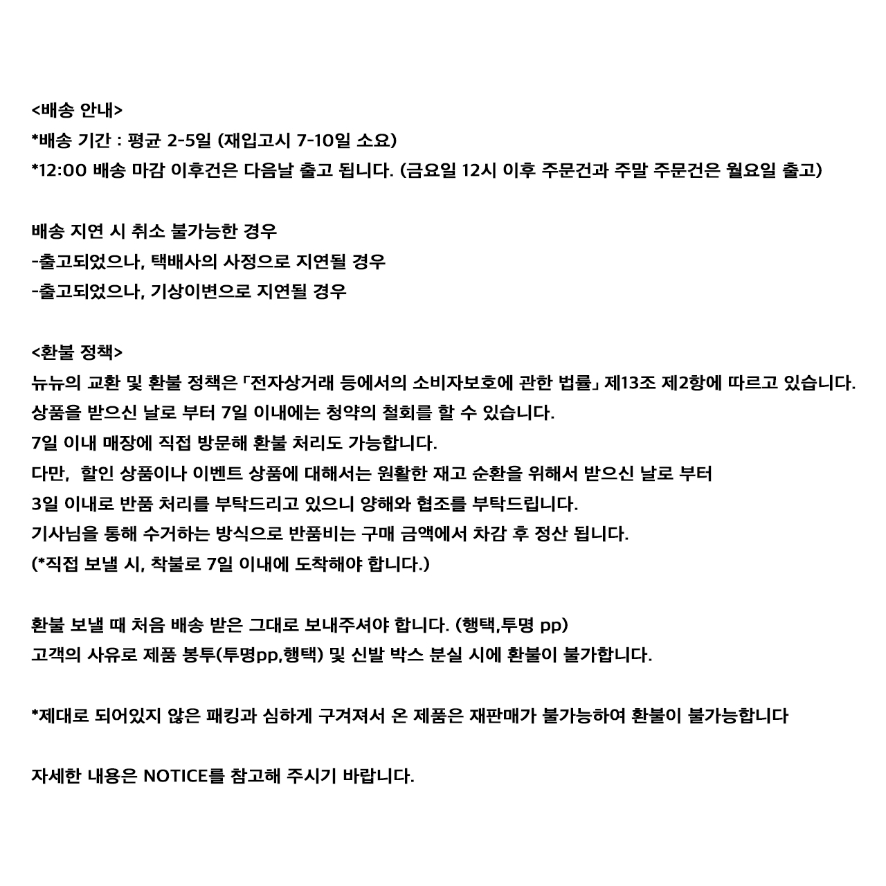 * 재고를 확보해 두기는 하지만 제품 품절 후에는 수입 제품 특성상 제작 기간이