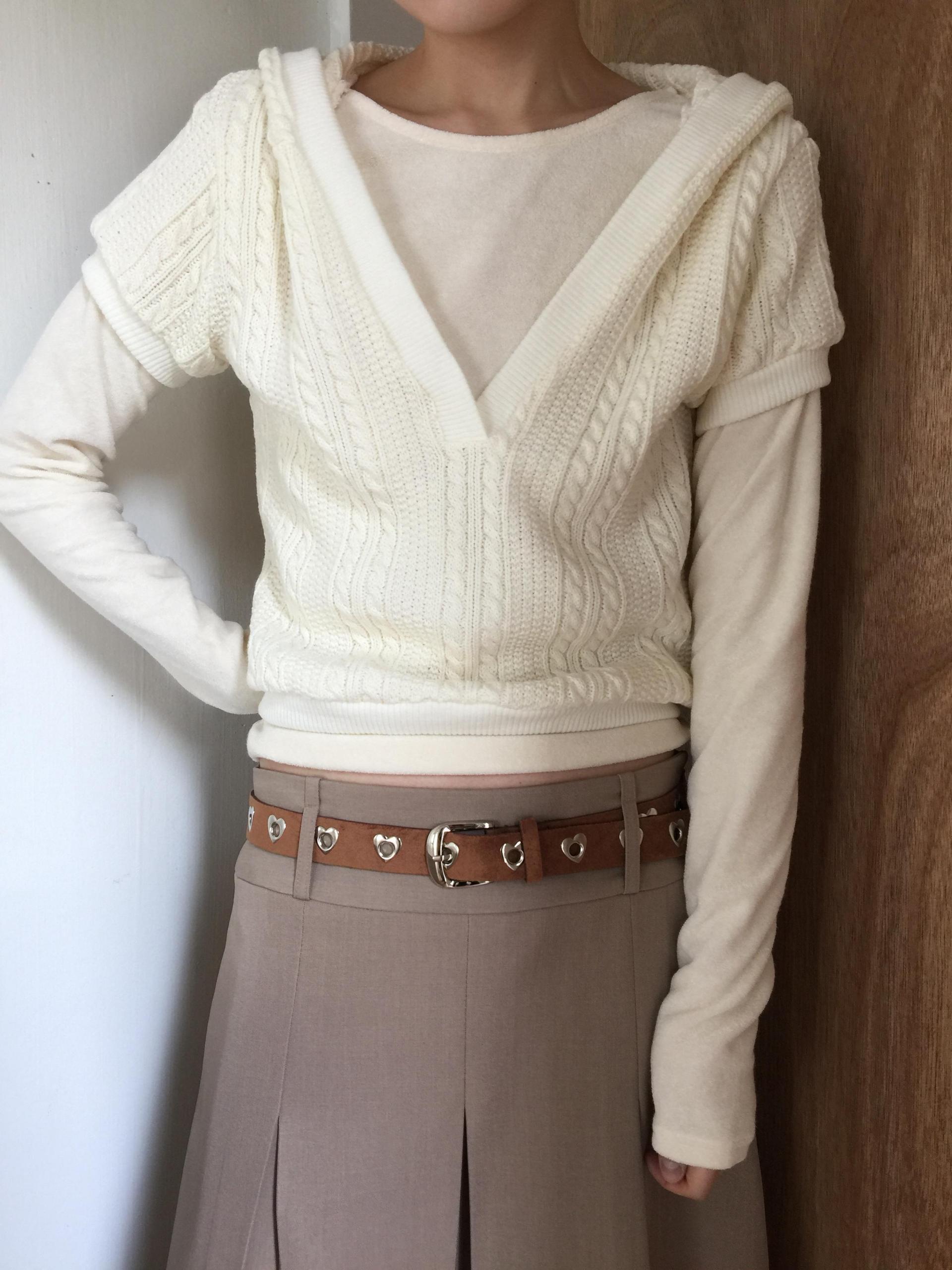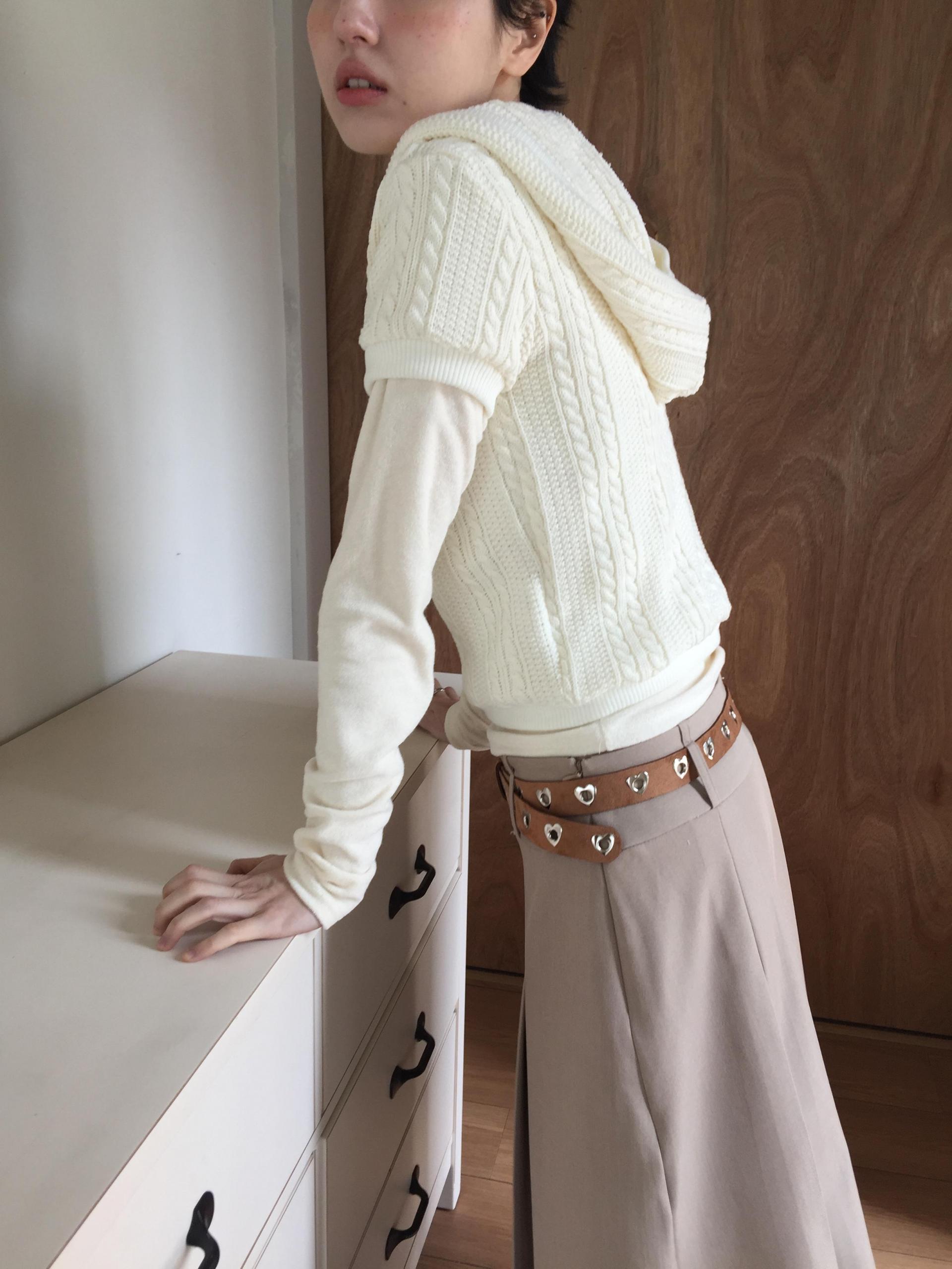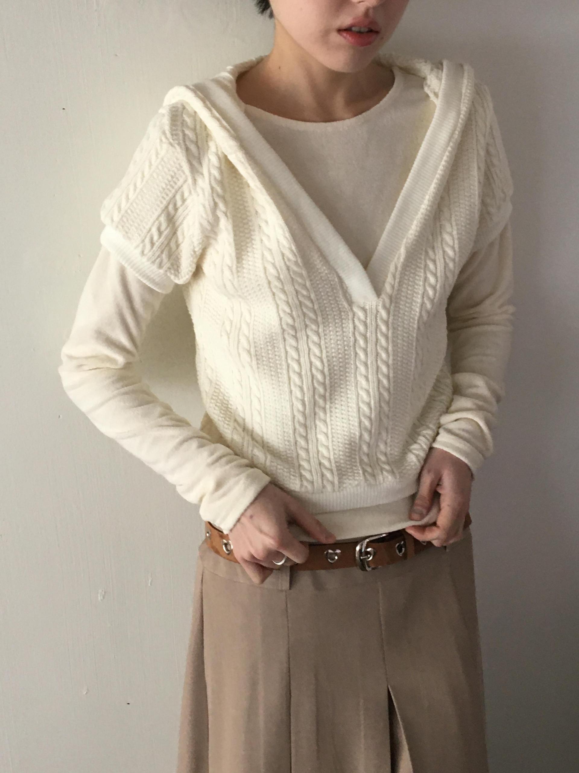 페미닌하면서도 캐주얼한 무드를 가미한 케이블 후드니트 입니다.